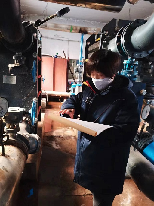 “10月2號我就來熱力站值守了,胡慧是10月6號來的,我倆住在一起互相有個照應(yīng)也不寂寞了。剛開始供暖那幾天事兒比較多,10月10日,有用戶反映家里暖氣不熱,我倆出去排查后發(fā)現(xiàn)是地溝內(nèi)有的回水閥門未開啟,因為我們要揭開井蓋下溝,我倆就找來物業(yè)的工作人員幫忙一起下地溝打開了閥門。還有一些本來不打算居住辦理了停供的用戶,被疫情封控在小區(qū),他們希望我們將管道接通先給供上暖,為了不讓用戶受冷凍,我倆在站里找好需要的配件,又聯(lián)系物業(yè)工作人員配合我們給用戶恢復(fù)了供暖。10月15日,我倆巡檢發(fā)現(xiàn)壓力表壓力上不去,說明失水嚴重,馬上告訴了站長,他們及時過來進行了搶修。”蔣秀明在電話中給筆者講著她倆值守期間的事兒。開朗健談的她還告訴筆者:“站里只有一個盆,洗臉、洗腳、擦洗我倆都公用這個盆,這個時候也沒那么多講究了,就想著解封回家能好好洗個澡……”交談中筆者絲毫感受不到她倆的一絲抱怨,積極向上、充滿陽光的心態(tài)讓筆者很感動。