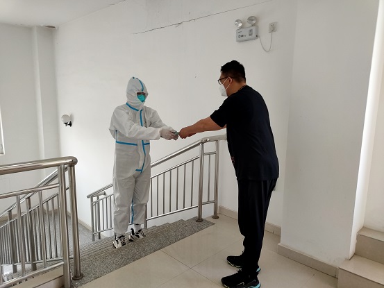 4月16日,城發惱包物流園區內一名外省來我市的韻達司機被確定為新冠肺炎無癥狀感染者。集團公司高度重視,第一時間啟動應急處置預案,當天集團公司主要領導立刻深入園區開展疫情防控工作部署,并在現場召開了調度會,安排部署疫情阻擊相關工作。為阻斷疫情蔓延、擴散,確保隔離點安全、規范運行,惱包物流園區封控管理期間,集團公司領導每天至少一次深入園區指導防疫工作,有時甚至三次。
