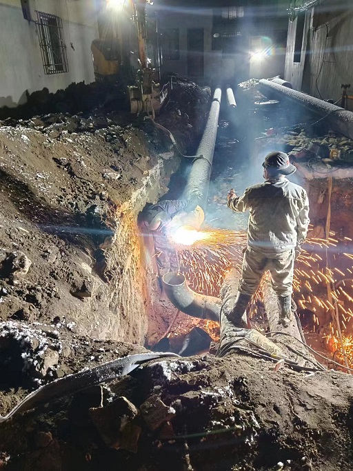 10月4日下午,新華西街分公司合和熱力站工作人員發現站內壓力突然下降,經排查是印象江南二期A1區的一根DN100主管道因腐蝕嚴重導致跑水,該區域負責人王曉宇和工作人員在征得小區防疫人員同意后第一時間進入小區展開搶修。在狹小的地溝內,搶修人員身著密不透氣的防護服,克服了呼吸不暢操作不便等困難,半蹲著身子對管道上安裝的多個調節閥一一進行了拆除,為管道做了短連接并加裝了新閥門,經過一晚上的奮戰,于凌晨4點完成了搶修。