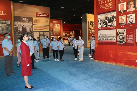 展覽共分為“建立中國共產黨,奪取新民主主義革命偉大勝利”、“成立中華人民共和國,進行社會主義革命和建設”、“實行改革開放,開創和發展中國特色社會主義”、“推進中國特色社會主義進入新時代,全面建成小康社會,開啟全面建設社會主義現代化國家新征程”四部分。大家跟隨著講解員的步伐,認真學習聆聽,不時駐足觀看,完全沉浸在了中國共產黨恢宏的歷史進程中!展廳內大量的圖文資料、珍貴的歷史文物以及可以互動的觸摸大屏幕,全方位、全過程、全景式、史詩般地展現了中國共產黨波瀾壯闊的百年歷程。