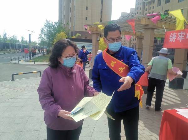 活動現場,黨支部書記娜仁按照既定方案,帶領大家分頭行動起來。“民族政策宣傳組”的隊員們一邊向過往的居民發放黨的民族理論和民族政策宣傳單,一邊做好現場宣傳講解,重點宣傳了黨的民族政策的主要內容、民族平等政策的內涵、民族區域自治政策的內涵、現階段我國民族工作的主題、現階段發展少數民族經濟的方針、民族團結關系的“三個離不開”內容、民族團結工作的“四個維護”內容及習近平總書記對各民族提出的“五個認同”等內容;講解了如何理解“中華民族共同體意識”、如何理解“推廣普及國家通用語言文字教育”等內容。“安全防火宣傳組”的隊員們分三組入樓開展安全防火宣傳檢查,重點對樓道內個別存在的亂堆放雜物、亂停非機動車及擅自占用、堵塞消防通道的住戶張貼清理通知單、宣傳將樓道占為己用的重大安全隱患,并告知業主限期自行清理,切實保障廣大業主的居住安全和環境衛生。